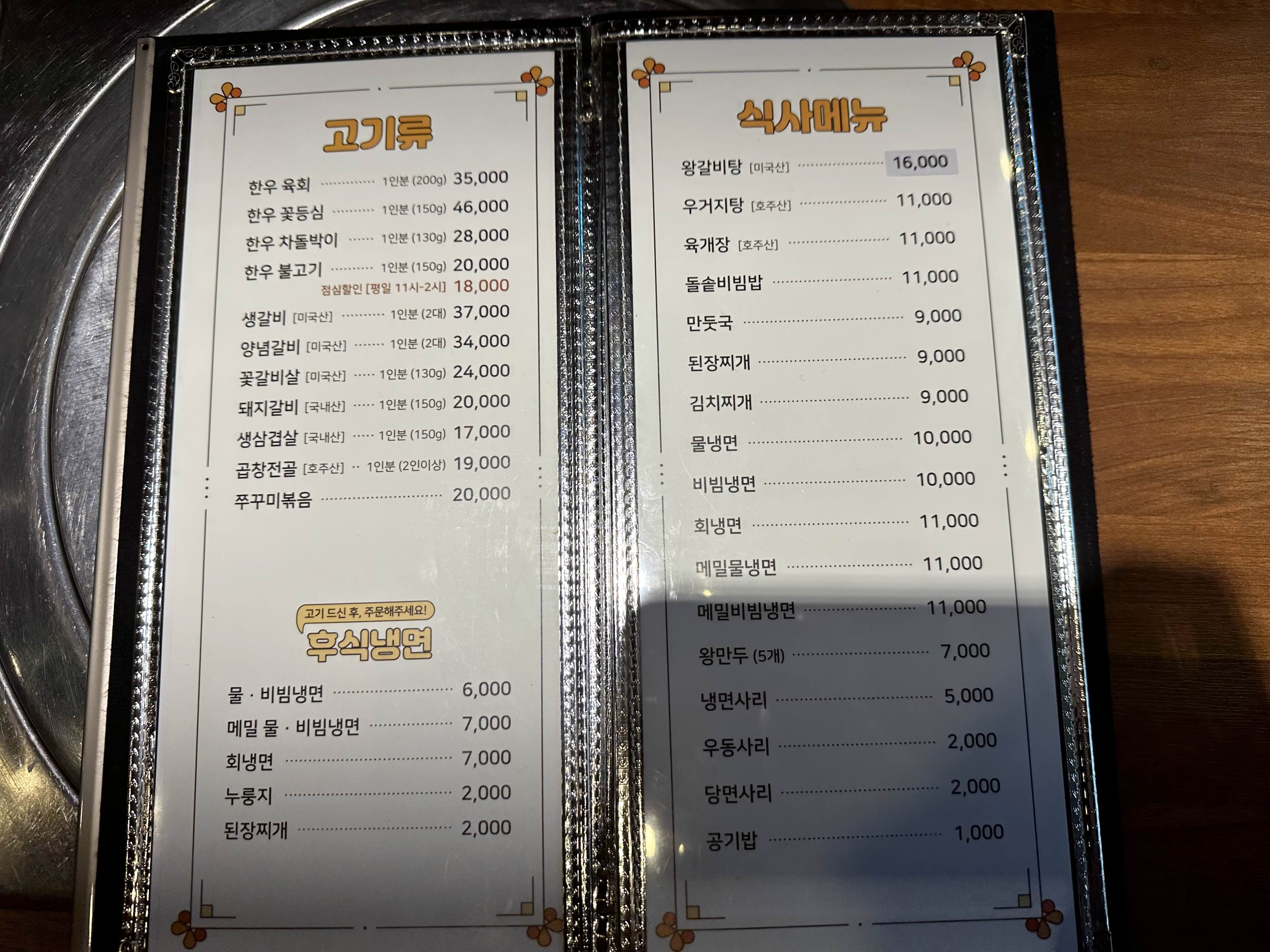 저는 갈 때마다 한우 불고기와 비빔냉면, 된장찌개, 누룽지 등 식사류만 먹어보았는데,